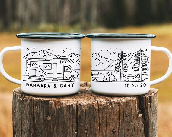 Personalized Campfire Enamel Mug Rv Adventure Couples Gift Etsy
